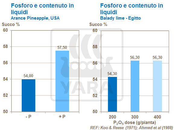 Il Fosforo ha un effetto positivo sul contenuto in succo dei frutti.