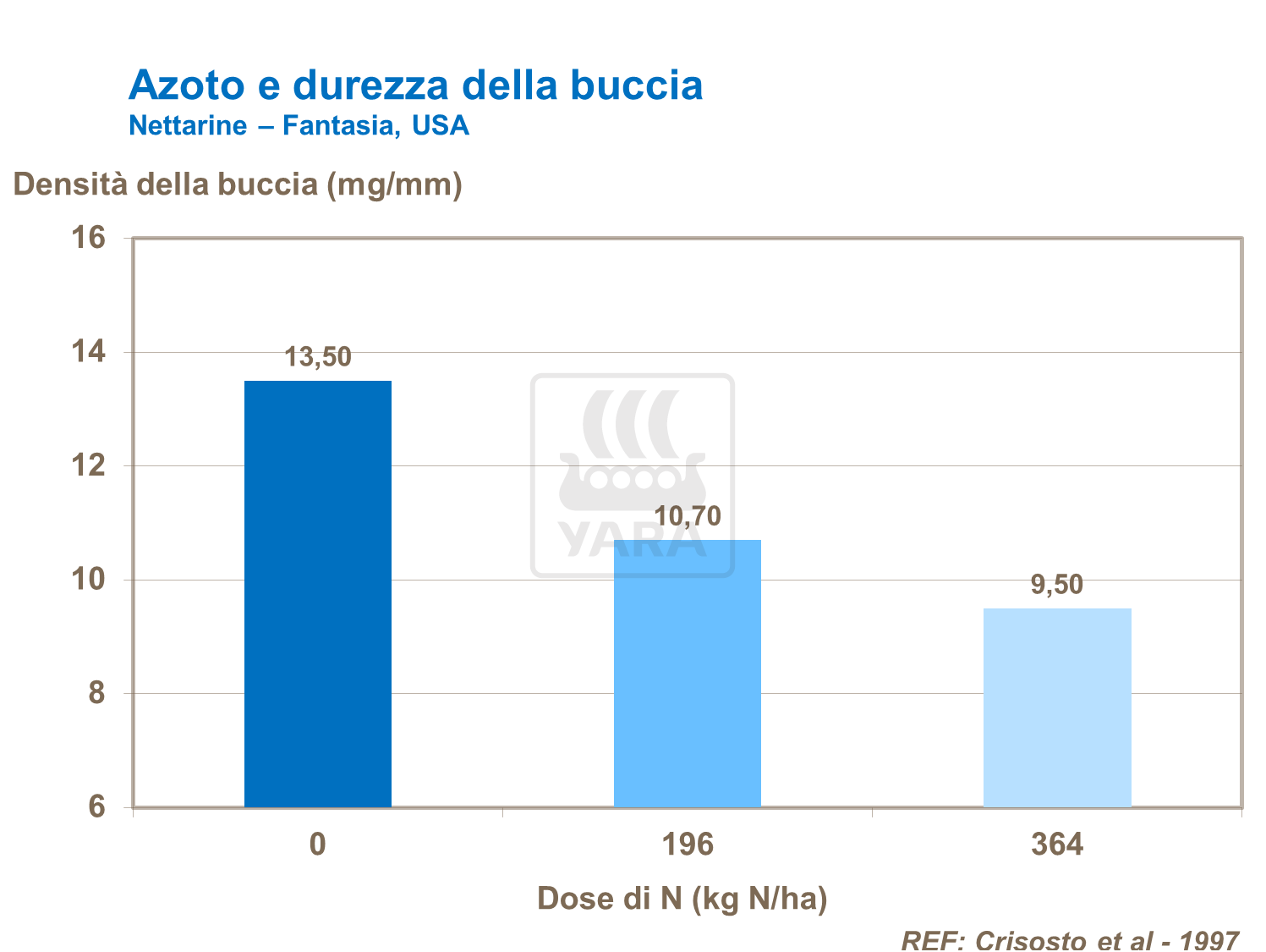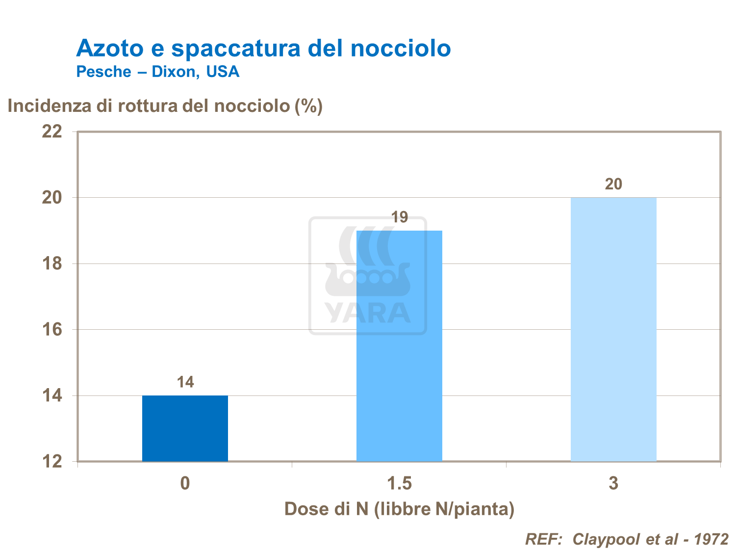 Troppo Azoto, tuttavia, può ridurre lo spessore della buccia. Un eccesso di Azoto aumenta la rottura del nocciolo nelle pesche. L'uso eccessivo di Azoto accresce così il rischio di danneggiamento durante la raccolta, lo stoccaggio e il trasporto, riducendo la commerciabilità e la conservabilità della frutta.