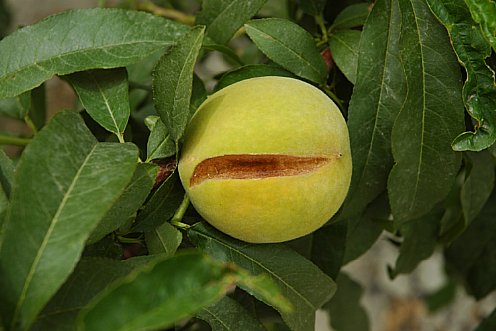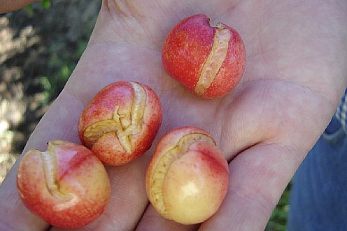 Le spaccature e le fessurazioni, causate di solito dalla pioggia prima della raccolta, sono un serio problema per tutte le drupacee, in particolare per le ciliegie e le prugne, perché rendono il prodotto invendibile. Nel corso dei periodi secchi la buccia diventa abbastanza anelastica. Quando poi piove o le colture vengono irrigate, il frutto assorbe una grande quantità di acqua, portando la buccia a scoppiare nel suo punto più debole.