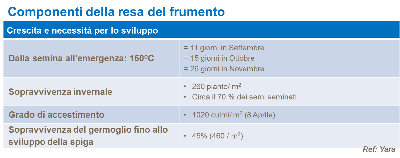 Tutta la stagione di crescita del frumento primaverile durerà tra 90 e 120 giorni, rispetto ai 190 - 210 giorni del frumento invernale.