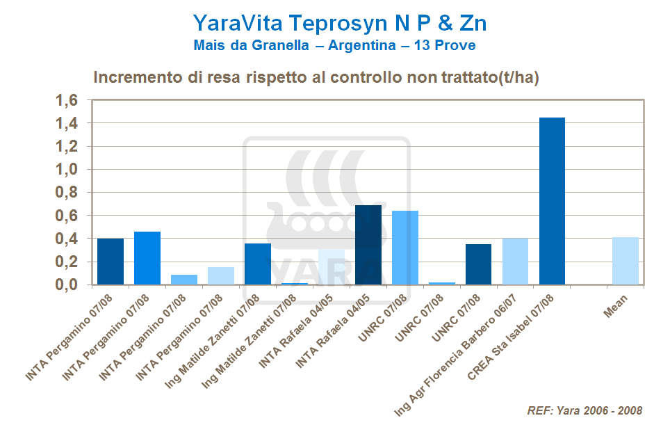 Questo tipo di reazione ha portato ad aumenti positivi della resa con una media dello 0,4 t/ha di mais da granella in Argentina.