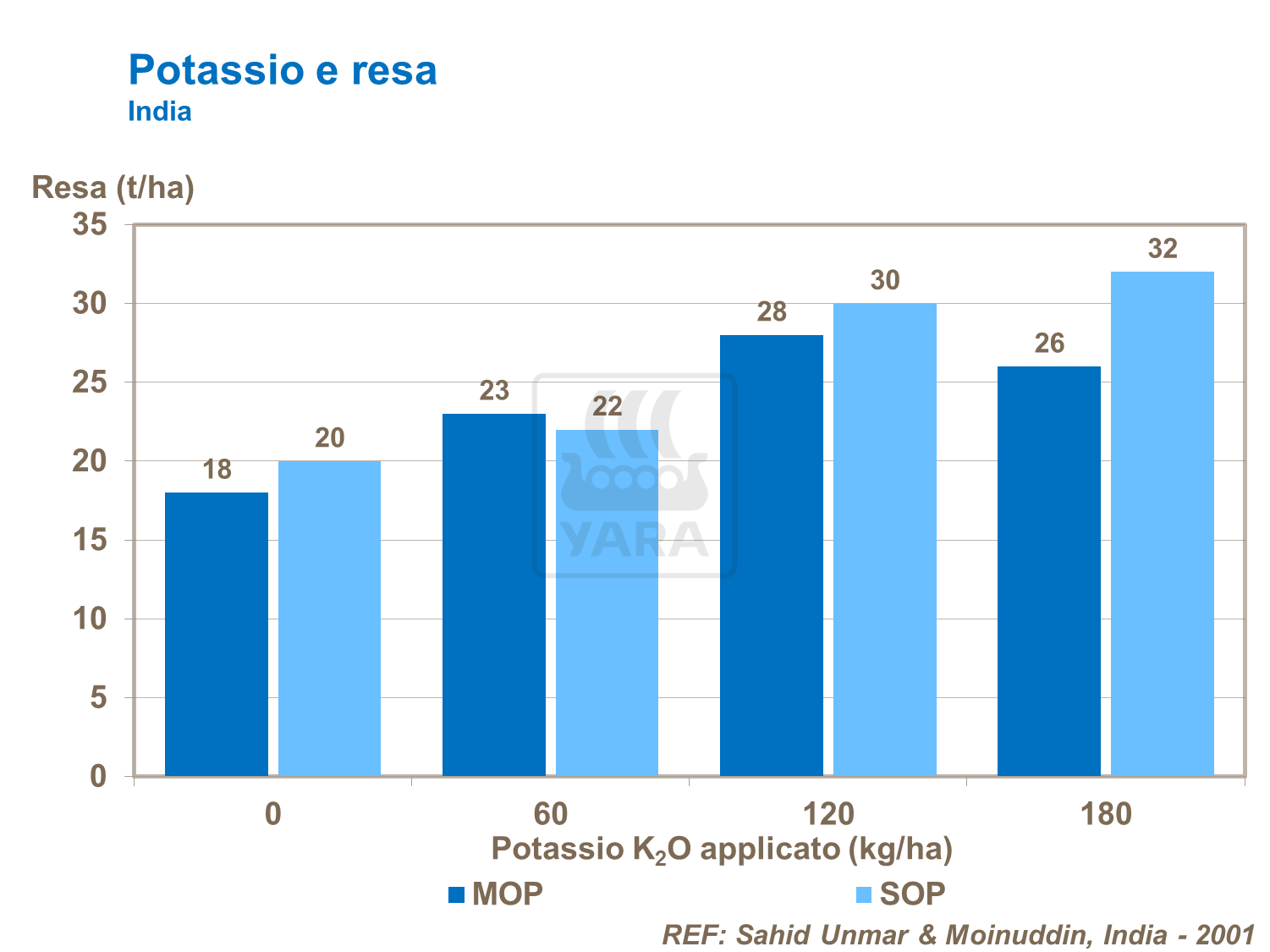 Queste sperimentazioni effettuate in India dimostrano l'aumento delle rese grazie al potassio e anche i vantaggi del solfato di potassio rispetto al cloruro di potassio.