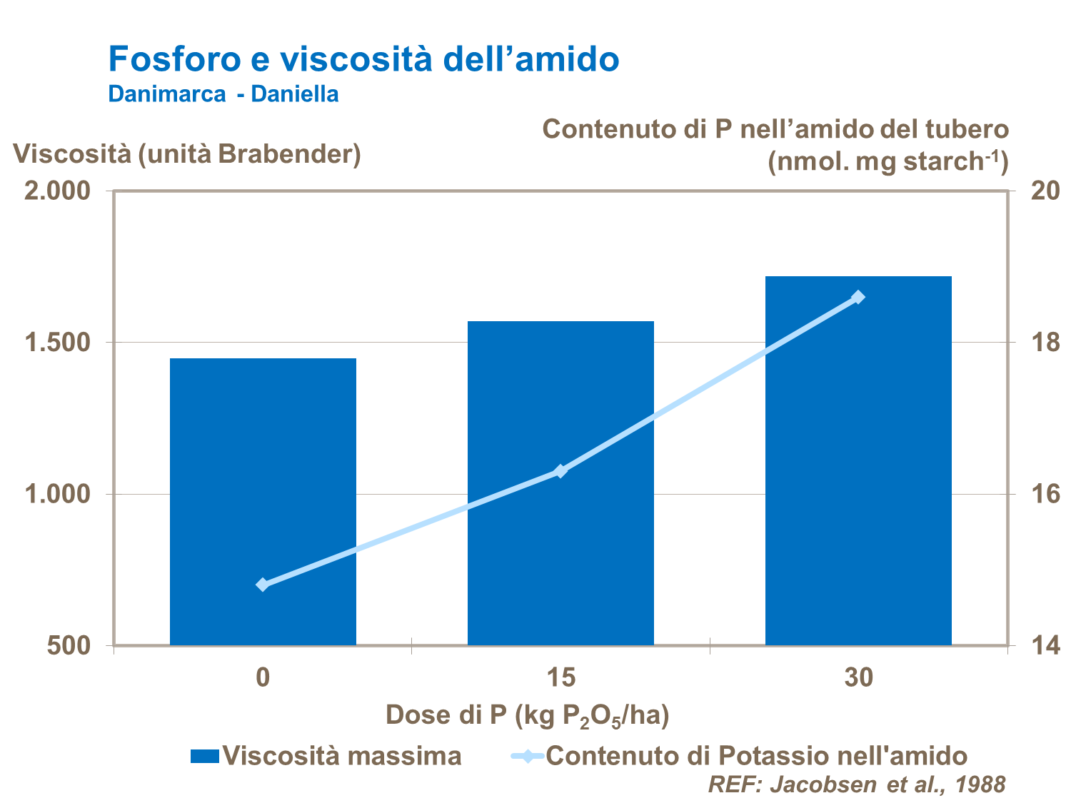 L'uso di fertilizzanti fosfatici può incidere sulla qualità nell'amido. Aumentando tenore di fosfati nel tubero aumenta anche la viscosità dell'amido gelatinizzato e la temperatura di gelatinizzazione diminuisce.