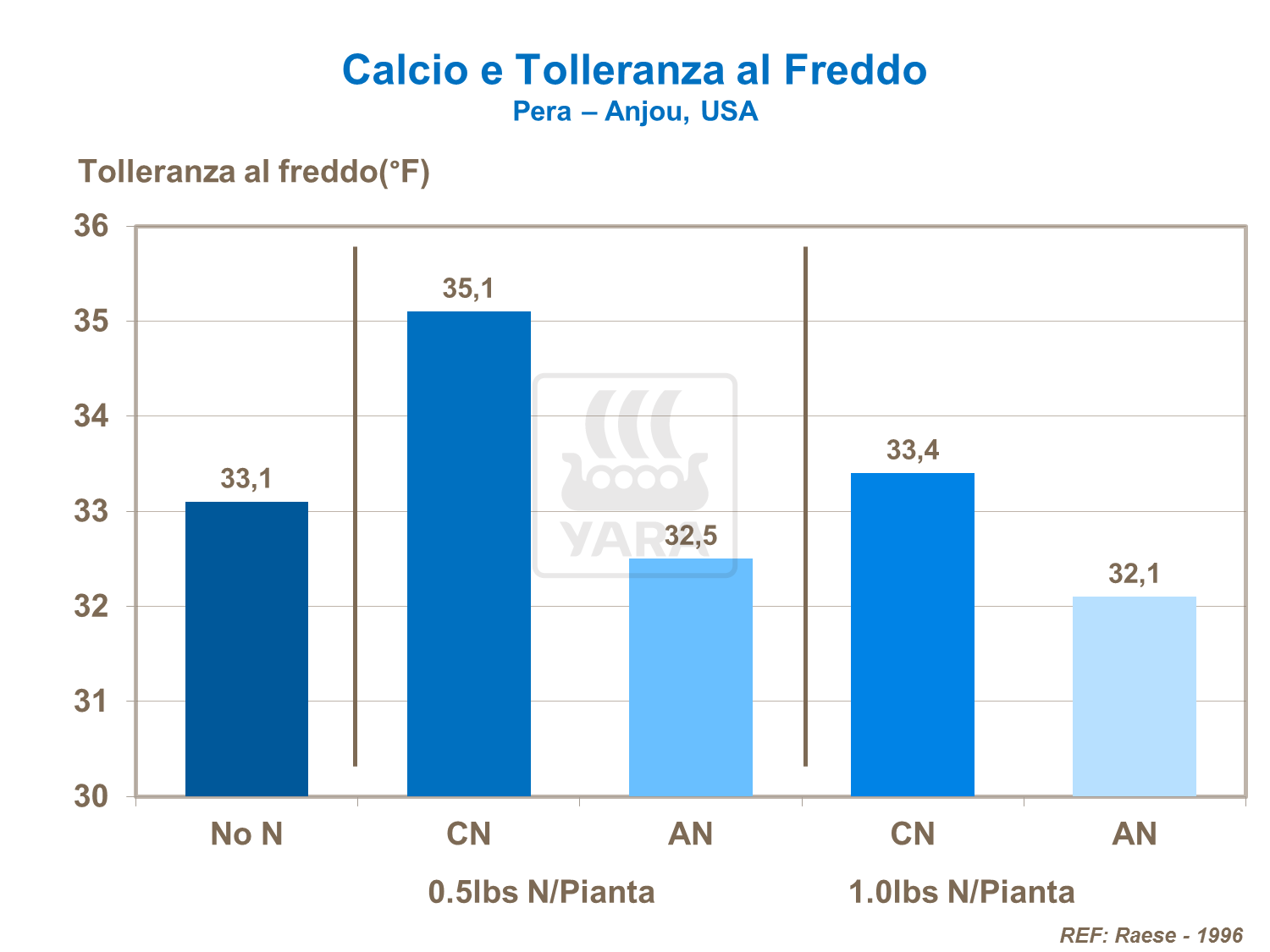 Il Calcio è fondamentale per le pere e la concentrazione nel frutto deve essere doppia rispetto a quella accettabile per le mele. Lo standard considerato accettabile per le pere europee è di 10 mg/100 g di peso dei frutti al momento della raccolta.