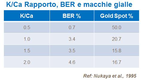 Le macchie gialle nei pomodori sono causate dalla deposizione di ossalato di calcio sotto la buccia e peggiorano in ambienti a elevata umidità. Questo disturbo provoca un aspetto opaco del frutto e indebolisce la buccia, abbreviando la conservabilità dei pomodori.