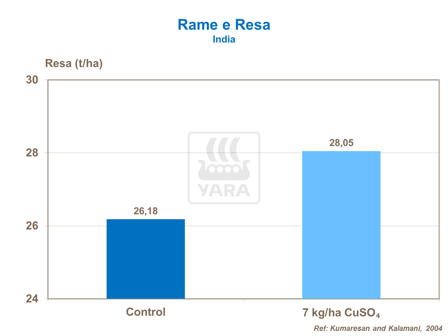 Le applicazioni di Rame al terreno aumentano la crescita della pianta e la resa finale.