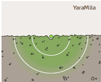 L'Azoto contenuto in YaraMila è per il 40-45% Azoto nitrico e per il 55-60% Azoto ammoniacale, a seconda della specifica formulazione. L'Azoto nitrico è fondamentale per l'effetto starter e per un buon sviluppo dell'apparato radicale, mentre l'Azoto ammoniacale è importante per assicurare una disponibilità graduale dell'elemento.